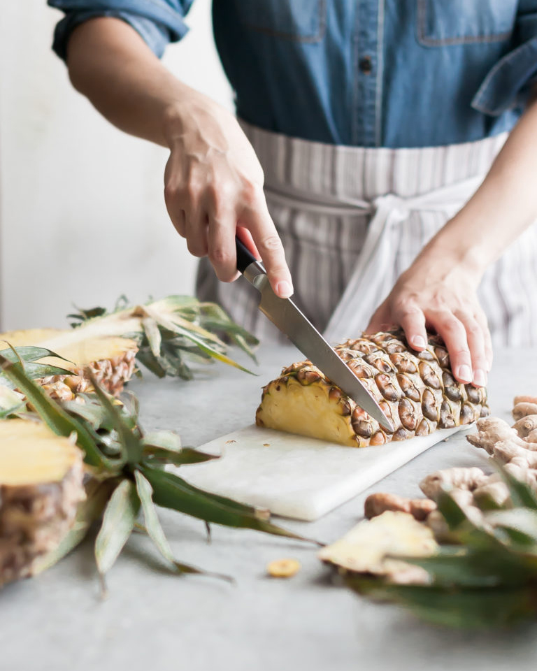 cutting pineapple